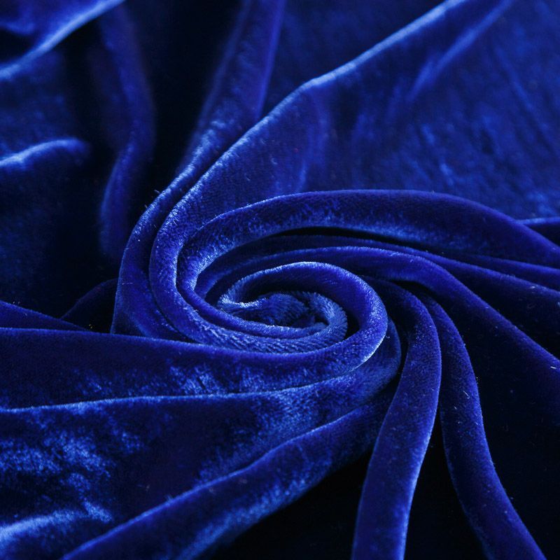 Итальянский бархат из шелка и вискозы. Ткань средней плотности, мягкая и гладкая на ощупь, с легким блеском, хорошо драпируется, струится. Идеальна для пошива платья, юбки, костюма в пижамном стиле, кимоно, туники.
