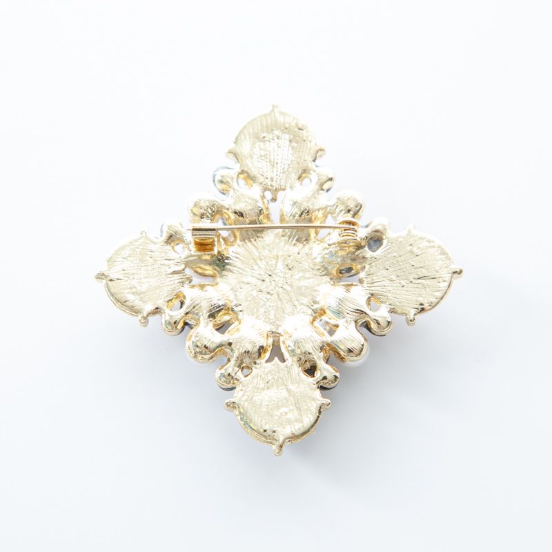 Брошь 45х45 мм Жемчуг 541588 золотой