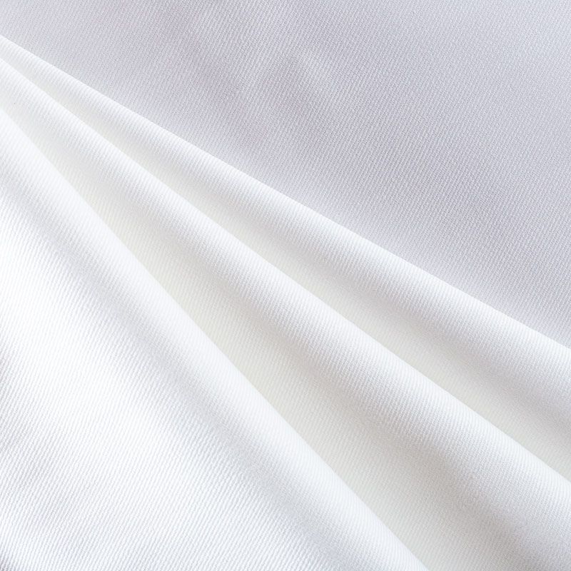 Поверхность ткани матовая, фактурная в диагональный рубчик. Материал имеет высокую плотность, при небольшой толщине, мягкий и приятный на ощупь, немного тянется за счет эластана в составе, обладает устойчивостью к истиранию и механическим повреждениям. Подойдет для пошива рубашек, сарафанов, платьев, юбок, шорт, брюк-джоггеров, лёгких курток и жакетов.