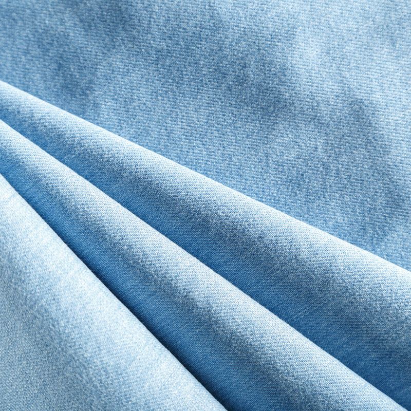 Поверхность ткани матовая, фактурная в диагональный рубчик. Материал имеет высокую плотность, при небольшой толщине, мягкий и приятный на ощупь, тянется за счет эластана в составе, обладает устойчивостью к истиранию и механическим повреждениям. Подойдет для пошива рубашек, сарафанов, платьев, юбок, шорт, брюк-джоггеров, лёгких курток и жакетов.