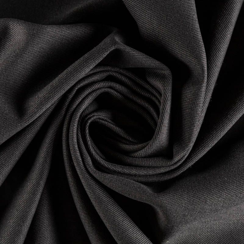 Поверхность ткани матовая, фактурная в диагональный рубчик. Материал имеет высокую плотность, при небольшой толщине, мягкий и приятный на ощупь, обладает устойчивостью к истиранию и механическим повреждениям. Подойдет для пошива рубашек, сарафанов, платьев, юбок, шорт, брюк-джоггеров, лёгких курток и жакетов.