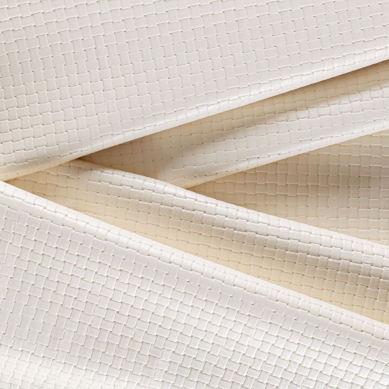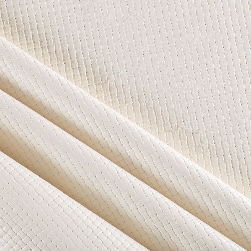 Итальянская экокожа в сливочном оттенке с объемной фактурой в виде плетения. Очень приятная на ощупь, отлично тянется, пластичная. С изнаночной стороны трикотаж белого цвета. Подойдет для пошива платья, брюк, шорт, юбки, куртки, плаща, пальто-рубашки.