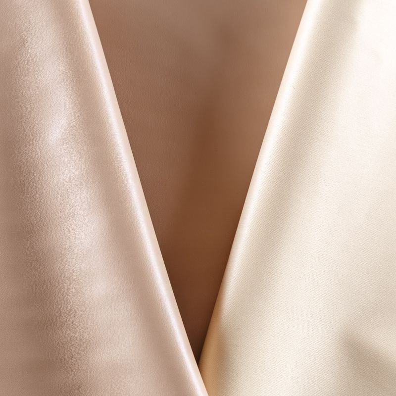 Искусственный материал, имитирующий натуральную кожу, на светлой трикотажной основе. Экокожа тоньше натуральной, не мнется, пластична, хорошо тянется за счет эластана в составе, облегает фигуру. Подойдет для пошива куртки, костюма, платья, юбки, брюк, шорт, комбинезона, сумки, рюкзака.
