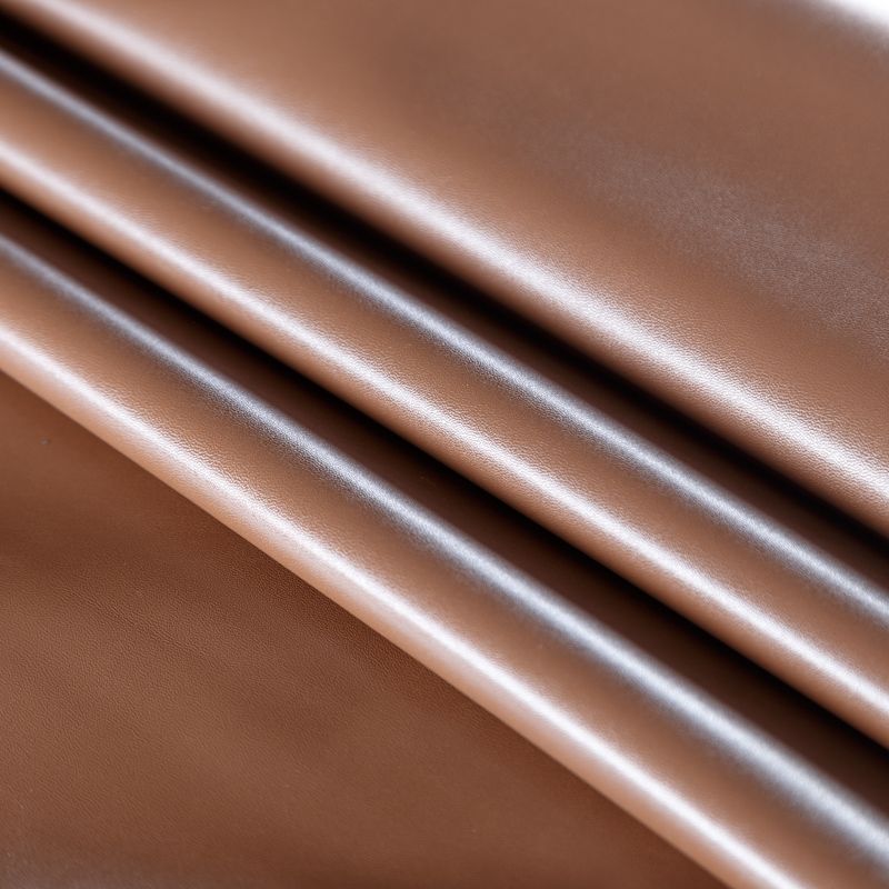 Искусственный материал, имитирующий натуральную кожу, на черной трикотажной основе. Экокожа тоньше натуральной, не мнется, пластична, хорошо тянется за счет эластана в составе, облегает фигуру. Подойдет для пошива куртки, костюма, платья, юбки, брюк, шорт, комбинезона, сумки, рюкзака.
