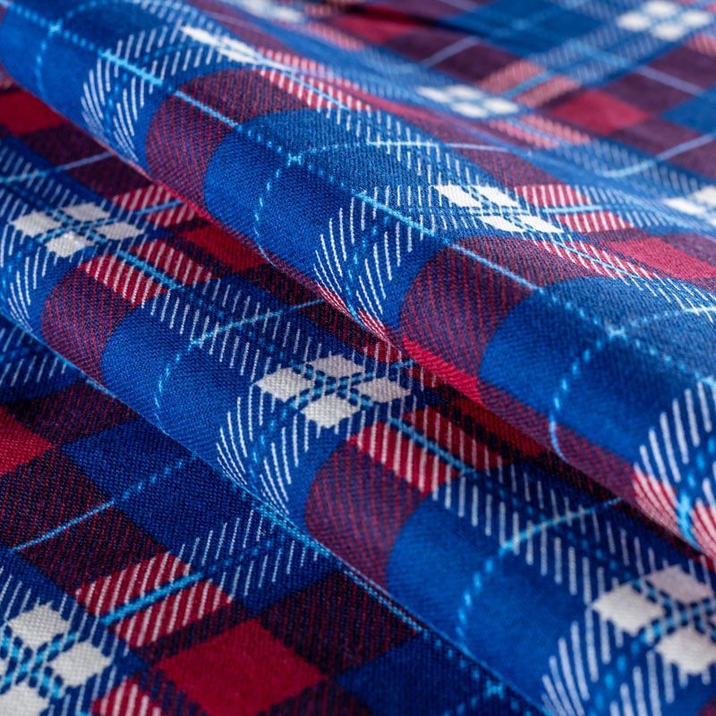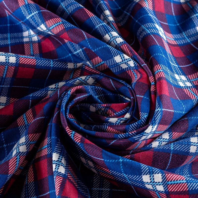 Износостойкий мягкий материал, не раздражает кожу, не садится, отлично впитывает влагу и хорошо удерживает тепло. На внутренней стороне мягкий ворс. Классический клетчатый принт с красно-синих оттенках прекрасно подойдет для пошива домашней одежды, теплой пижамы, халата, рубашек различного фасона.
