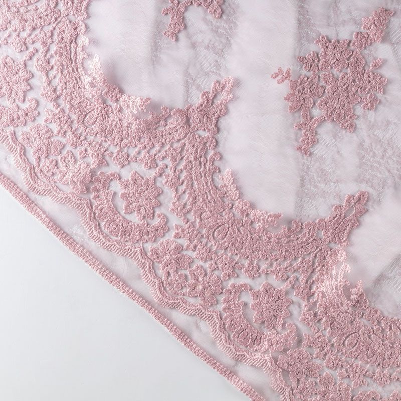 Итальянский гипюр с воздушным кружевным орнаментом, который соединяет прозрачная тонкая сетка розового оттенка. Вышивка выполнена вискозной не очень плотно, поэтому полотно тонкое, легкое, очень мягкое и пластичное, хорошо драпируется, приятное тактильно. С обеих сторон ткань украшена симметричными фестонами, что придает ей законченный и нарядный вид. Великолепно будет смотреться в нарядном вечернем, свадебном платье, платье на выпускной бал, в юбках, блузках, топах.