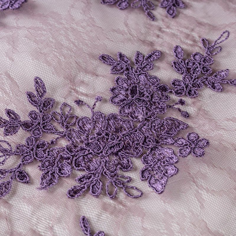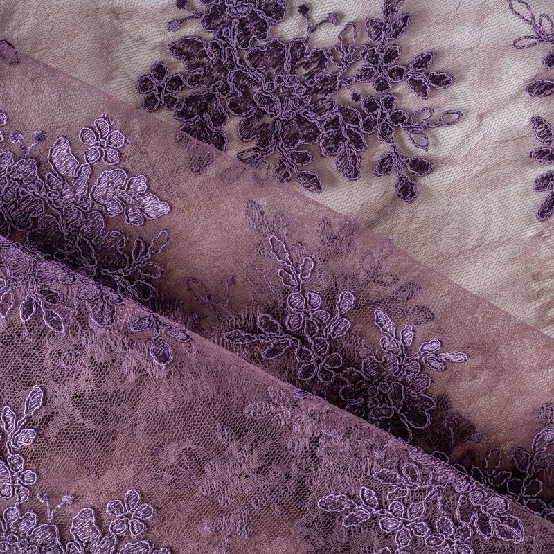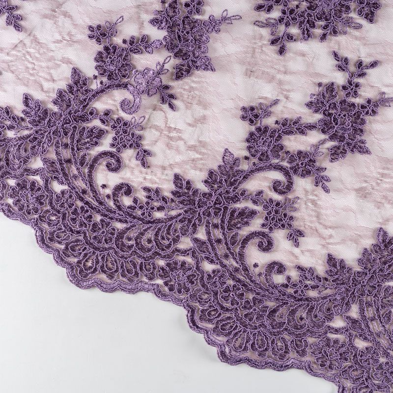 Кружевное полотно на сетчатой жаккардовой основе насыщенного брусничного оттенка с флористическим узором. Тонкое, легкое, очень мягкое и пластичное, хорошо драпируется, приятное тактильно. Вышивка оформлена кордовой нитью. С обеих сторон ткань украшена симметричными фестонами, что придает полотну законченный и нарядный вид. Великолепно будет смотреться в нарядном вечернем, свадебном платье, платье на выпускной бал, в юбках, блузках, топах. Также можно применять отдельные элементы для декора, которые вырезаются из полотна.