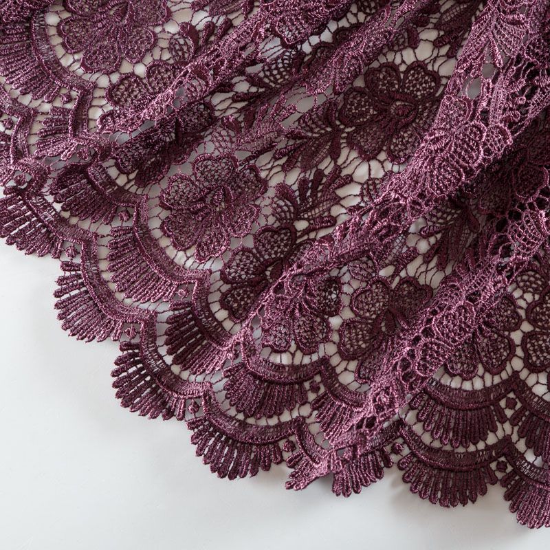 Гипюр-макраме представляет собой ажурное полотно, имеющее рельефную текстуру с цветочным ажурным плетением по всей ширине и фестонами по обе стороны кромок. Материал прозрачный на теле и на просвет, требуется подклад. Всегда актуален при создании утончённых и роскошных нарядов, придавая им дороговизны и оригинальности. Может использоваться для пошива платьев, костюмов прямого кроя, изготовления декоративных элеметов. Набирается на изделие объемом.