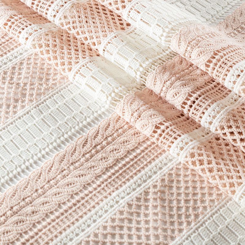 Гипюр-макраме представляет собой ажурное полотно, имеющее рельефную текстуру. На ощупь достаточно жесткий, держит форму. Требуется подклад. Всегда актуален при создании элегантных и роскошных нарядов, придавая им дороговизны и оригинальности. Может использоваться для пошива платьев, юбок, шорт, костюмов прямого кроя, изготовления декоративных элеметов. Набирается на изделие объемом.