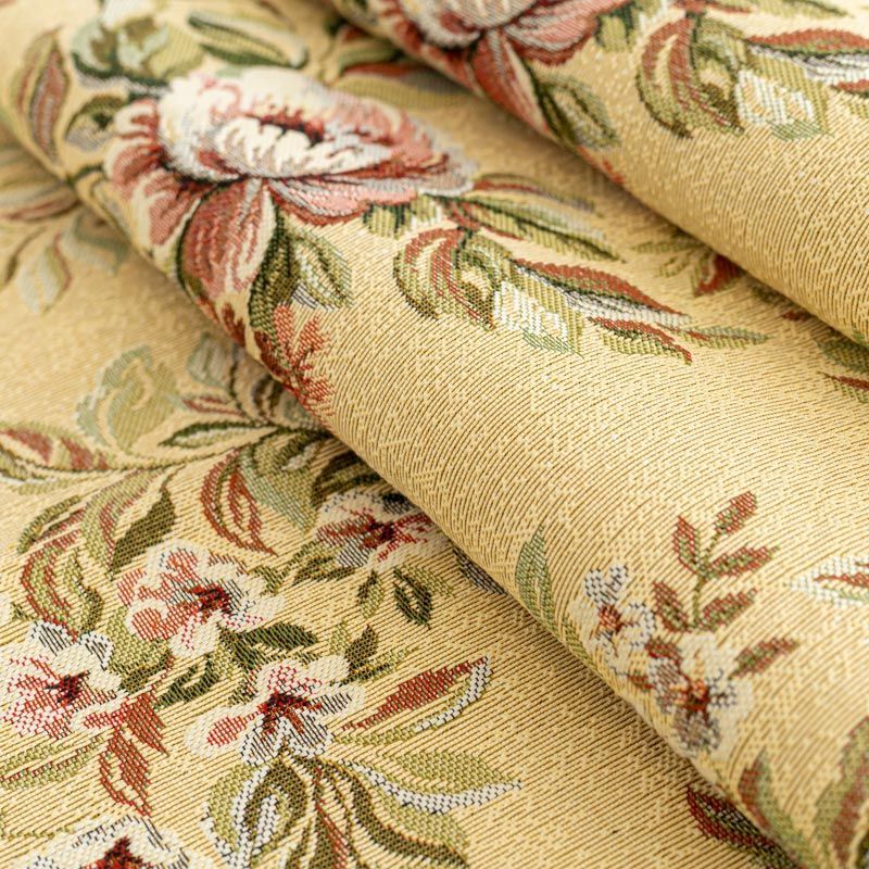Гобелен представляет собой ткань, выполненную перекрестным плетением нитей с одномоментным созданием сюжетной или орнаментальной композиции. Это плотный материал высокую прочность и износостойкость. Гобелен используют для пошива плотных светонепроницаемых штор, декоративного домашнего текстиля и аксессуаров, в мебельном производстве для обивки мебели. Так же применяется в рукоделии: модные кошельки, сумочки, пояса и другие аксессуары и при изготовлении дизайнерской одежды. Цветочный рисунок - настоящее украшение, придает изделию естественность, чувственность и налет романтичности.