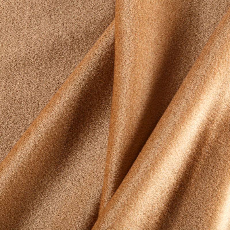 Итальянский пальтовый кашемир благородного бежевого оттенка. Ткань мягкая, пластичная, приятная на ощупь, гибкая, средней толщины, при этом высокой плотности. Поверхность имеет короткий ворс. Подойдет для пошива пальто, куртки, жакета, парки, кейпа, жакета или пончо.