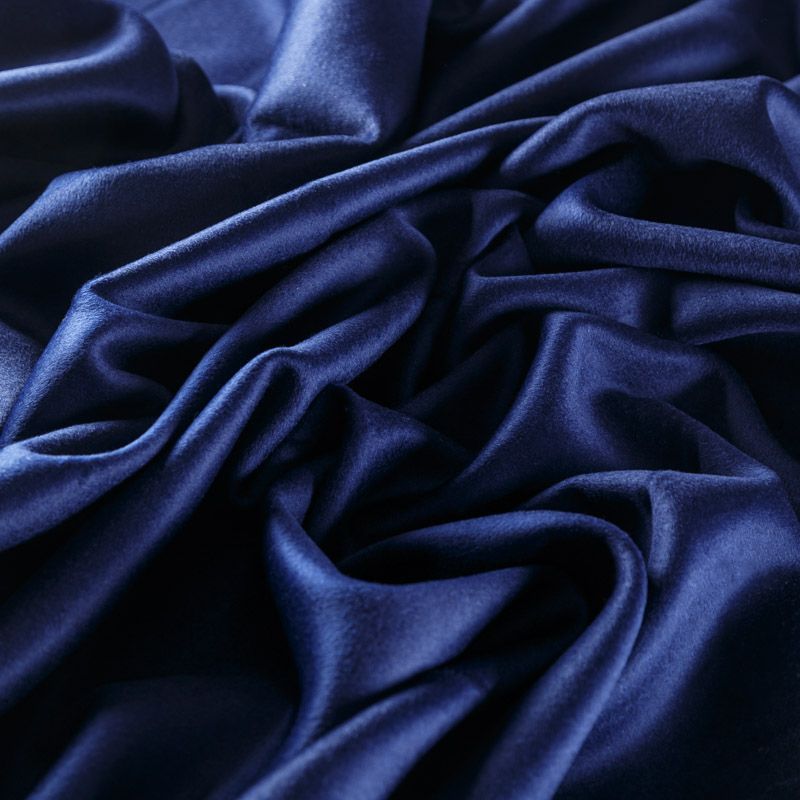 Итальянский пальтовый кашемир в благородном синем оттенке. Ткань мягкая, пластичная, приятная на ощупь, гибкая, средней толщины, при этом высокой плотности. Поверхность имеет короткий ворс. Подойдет для пошива пальто, куртки, жакета, парки, кейпа, жакета или пончо.