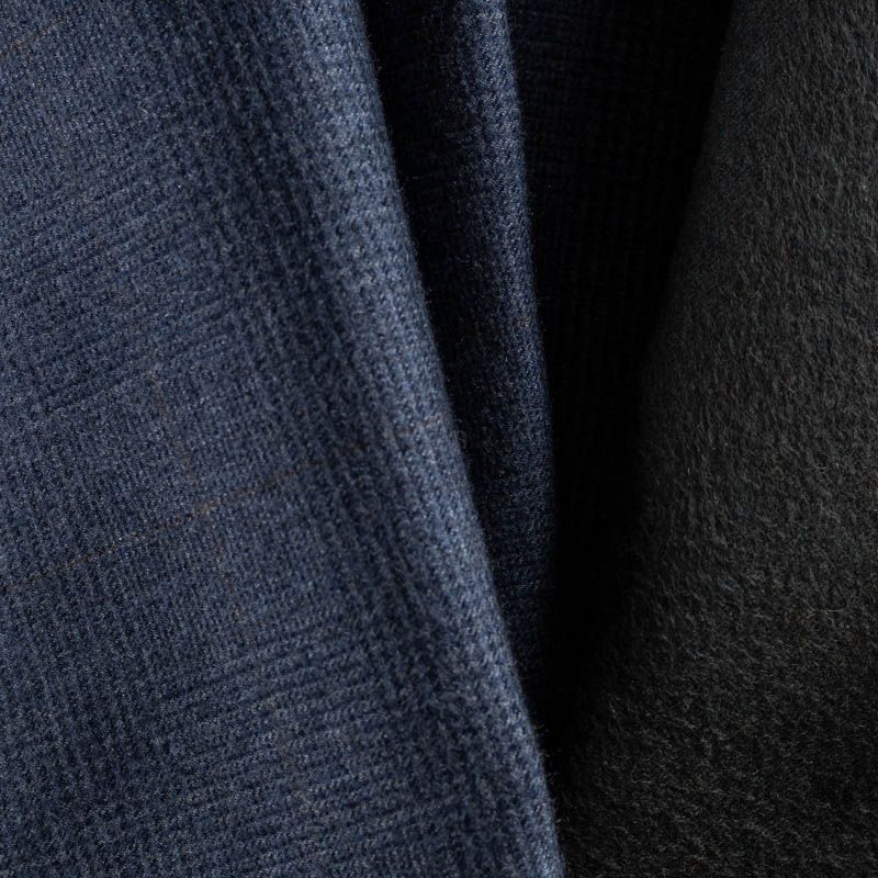 Пальтовый 2-х сторонний кашемир темно-синего оттенка с принтом гленчек на лицевой стороне. Вторая сторона черного цвета. Ткань необычайно мягкая, приятная на ощупь, гибкая, средней толщины. Поверхность имеет короткий ворс. Подойдет для пошива пальто, куртки, жакета, парки, кейпа, жакета или пончо.
