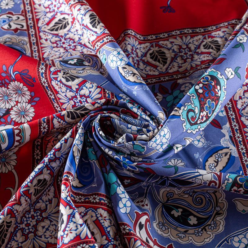 Плательно-рубашечный купонный хлопок с растительным узором в красно-синих тонах - хит этого летнего сезона. Ткань имеет плотное переплетение, матовую гладкую поверхность, хорошо держит форму, не прозрачная. Подойдет для пошива рубашек, платья-рубашки, юбки, сарафана, туники, домашней одежды.