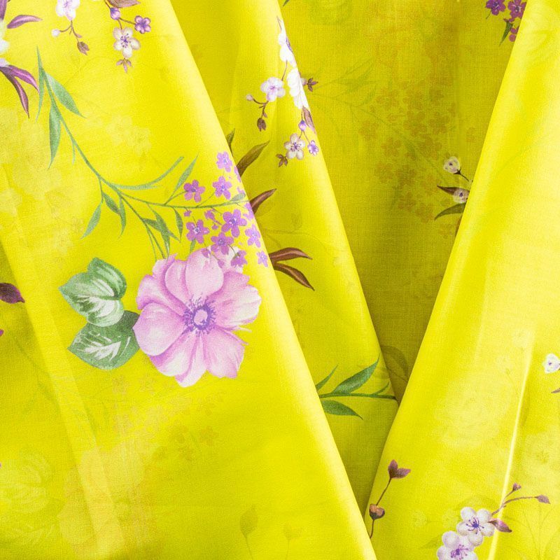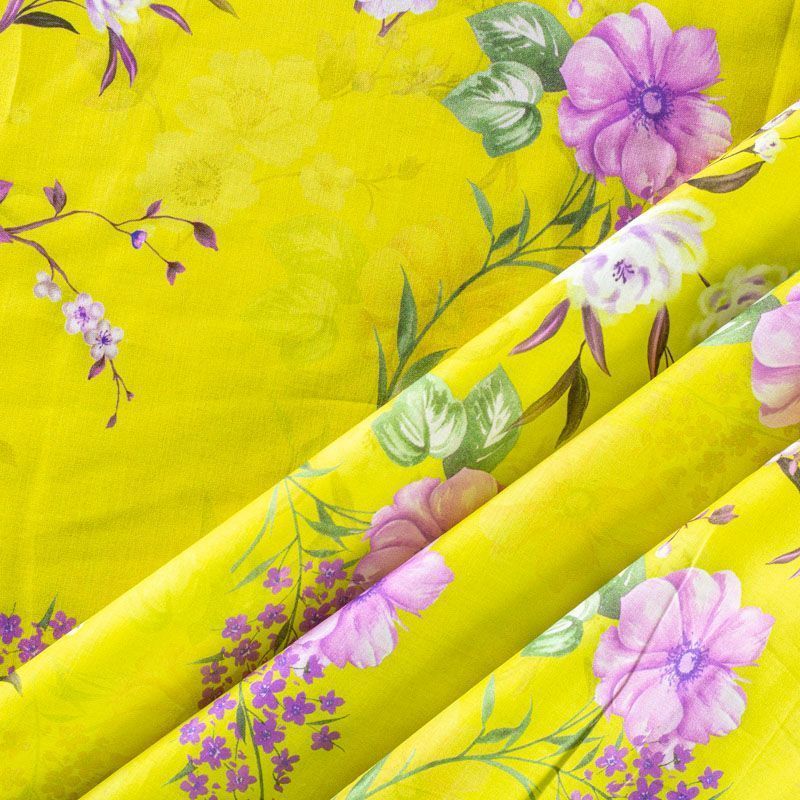 Плательно-рубашечный хлопок сложного красивого желтого оттенка с элегантным цветочным принтом. Ткань очень лёгкая, воздушная, тонкая, похожа на батист, немного прозрачная, поверхность матовая, гладкая, приятная к телу, хорошо драпируется. Прекрасно подойдет блузы, платья-рубашки, летнего сарафана, туники.