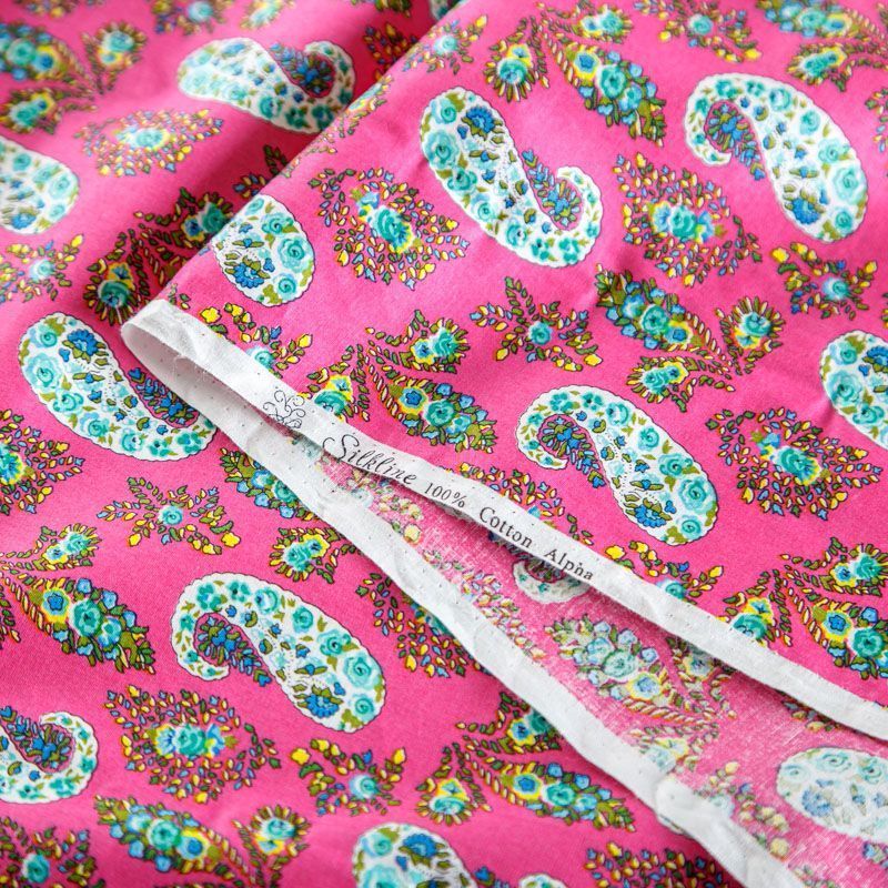 Плательно-рубашечная ткань из натурального хлопка с узором пейсли. Ткань легкая, тонкая, хорошо "дышит", слегка держит форму, не сухая, не прозрачная. Подойдет для пошива летнего платья, летящей юбки, блузы, сарафана, комбинезона или рубашки, а также для домашней одежды.