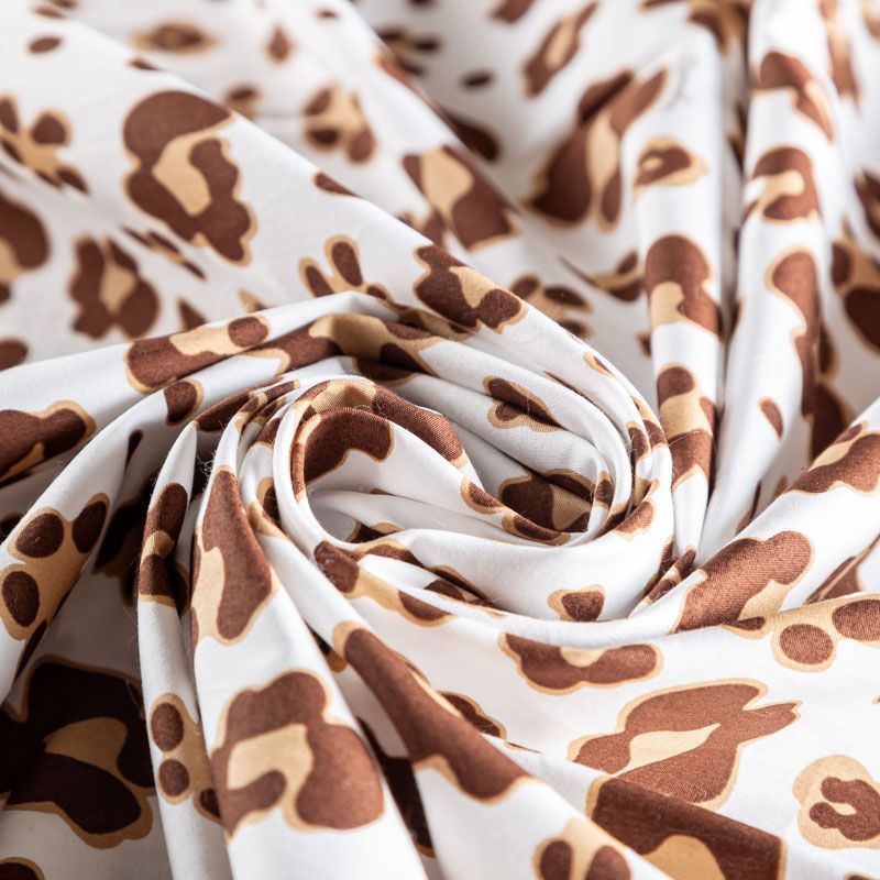 Плательно-рубашечный хлопок от бренда Monnalisa со стилизованным анималистическим принтом. Ткань пластичная, легкая, немного просвечивает, поверхность гладкая, приятная на ощупь. Подойдет для пошива платья, рубашек, платья-рубашки, юбки, сарафана, туники, комбинезона, домашней одежды.