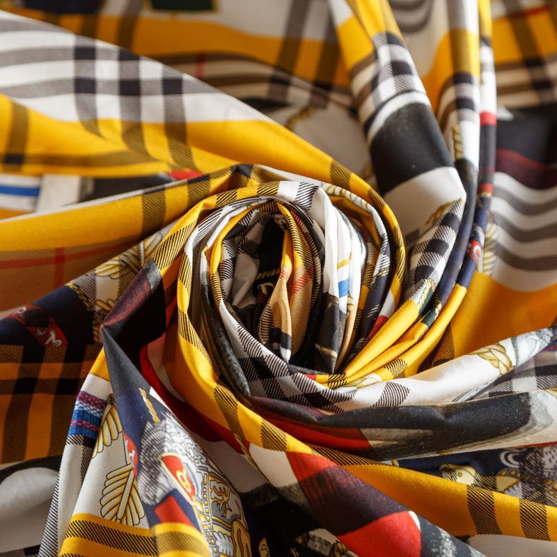 Плательно-рубашечная ткань из натурального хлопка с геометрическим принтом в стиле известного бренда. Ткань легкая, тонкая, хорошо "дышит", мягкая, не прозрачная, держит форму. Подойдет для пошива рубашки или блузы, платья-рубашки, юбки, сарафана, комбинезона, топа или летнего костюма.