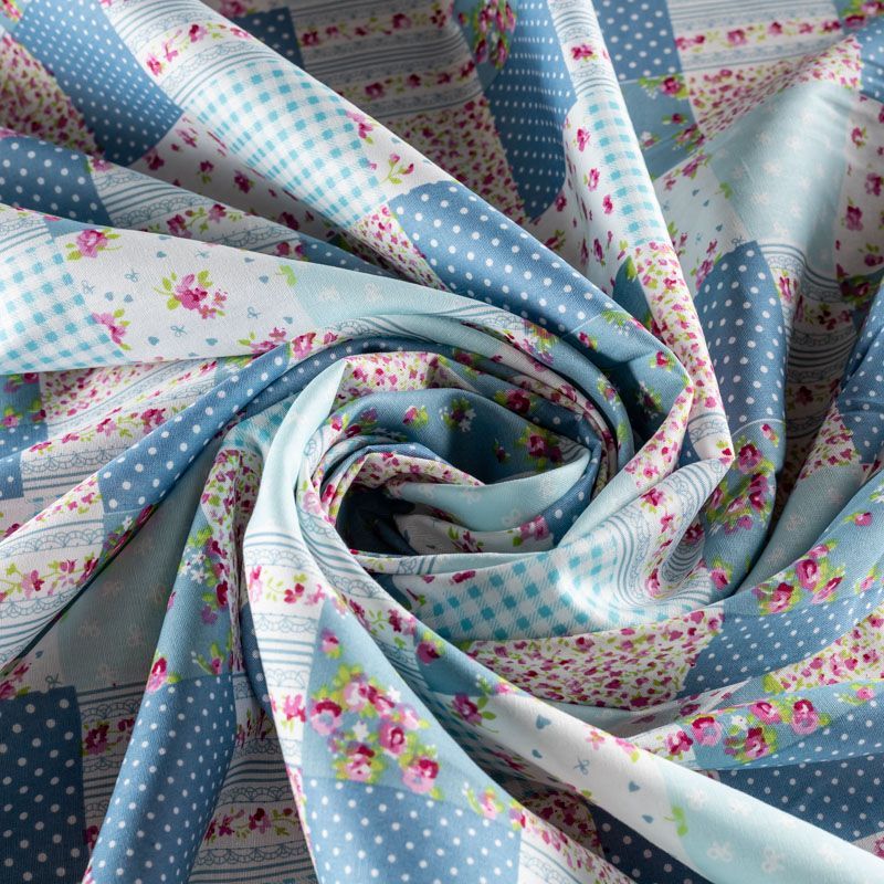 Ткань из натурального хлопка с рисунком в виде сшитых между собой разных лоскутков (печворк). Размер клетки 5*5 см. Ткань легкая, хорошо "дышит", мягкая, слегка прозрачная. Подойдет для пошива белья, рукоделия, печворка, изготовления предметов интерьера.