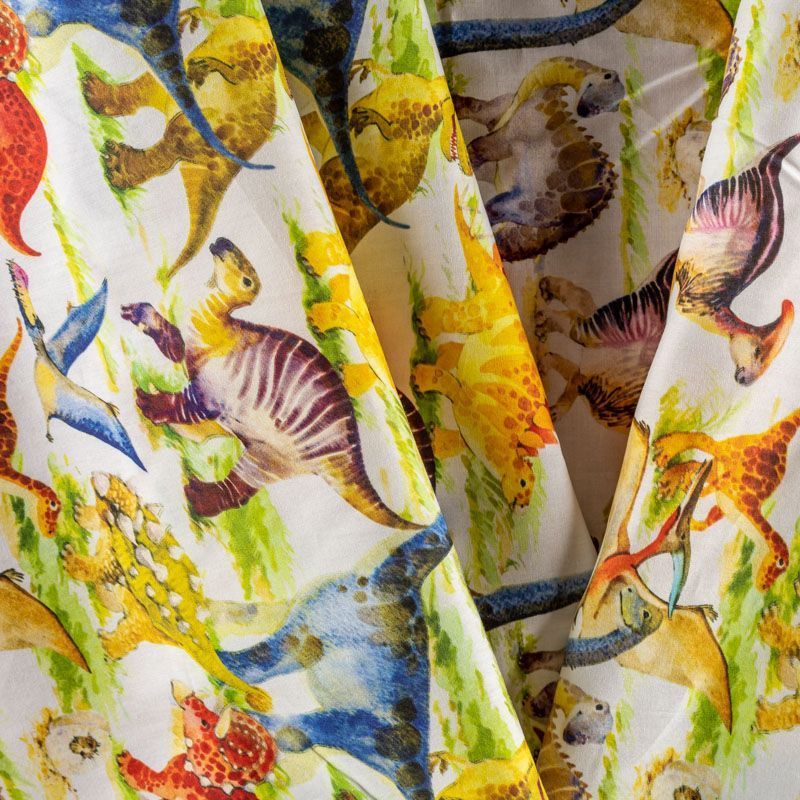 Итальянский натуральный хлопок с ярким принтом в виде милых динозавриков. Ткань легкая, тонкая, хорошо "дышит", мягкая, слегка прозрачная, по плотности напоминает батист. Подойдет для пошива домашней одежды, детских летних платьев, песочников, юбки, сарафана или рубашки, а также для для пошива постельных принадлежностей, подушек, покрывал, скрапбукинга, корзин и других видов творчества.