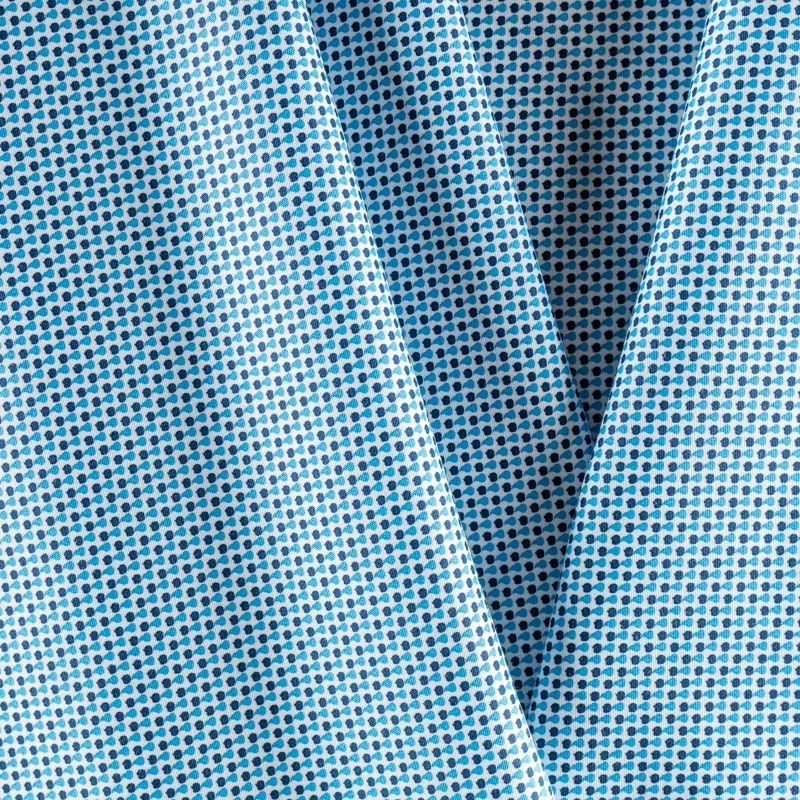 На белом фоне мелкий геометрический рисунок синего и лазурного цвета.