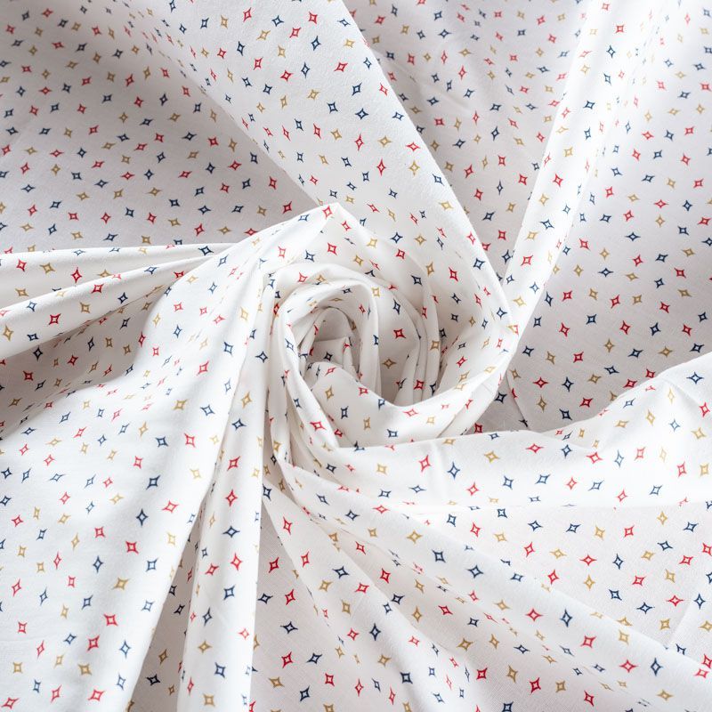 Плательно-рубашечный хлопок в разноцветный мелкий геометрический рисунок. Ткань мягкая, лёгкая, непрозрачная, пластичная и приятная к телу, хорошо драпируется, имеет гладкую матовую поверхность и сатиновое плетение. Прекрасно подойдет как для пошива платья-рубашки, сарафана, платьев различных фасонов, туники, топа, летнего костюма, комбинезона, мужской и детской одежды.