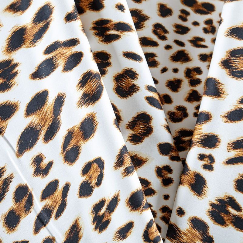 Итальянский коттон белого цвета с анималистическим принтом в природных оттенках. Поверхность гладкая, матовая, ткань средней плотности, не толстая, хорошо держит форму, тянется за счет эластана в составе. Подойдет для пошива костюма, жакета, юбки, платья, брюк или шорт.