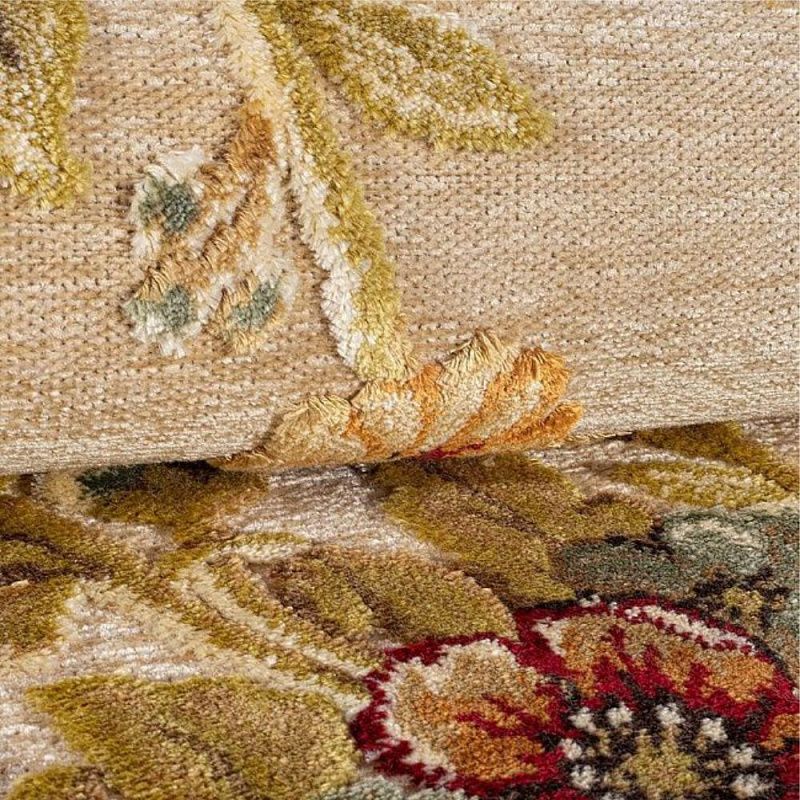 Круглый ковер Genova на джутовой основе из вискозной нити, которую соединили с акриловым шениллом, от бельгийского производителя Ragolle. Плотность ворса - 860 000 узлов на кв.м., высота ворса - 5 мм. Вес - 1850 гр на кв.м. Способ производства - машинная работа. Ковер имеет разный оттенок в зависимости от угла падения света, это связанно с шелковистостью вискозной нити, а также с 3D дизайном, что придает поверхности рельефности.