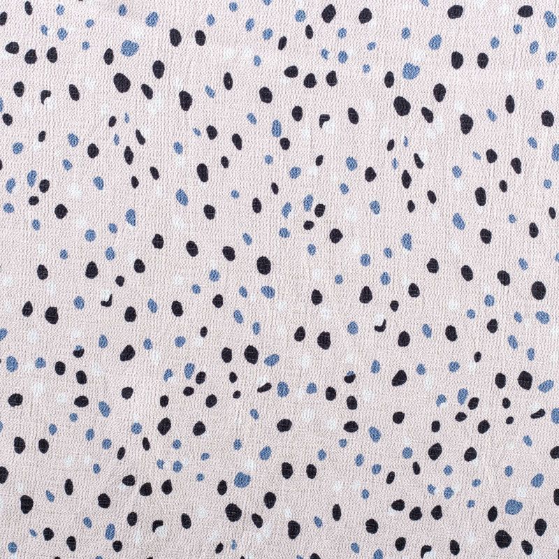 Плательный креп с принтом в горох. Ткань средней плотности, не толстая, пластичная, поверхность полотна матовая, с характерной мелкозернистой фактурой, прочная, хорошо драпирующаяся. Превосходно подойдет для пошива стильного костюма, юбки, платья, комбинезона, топа, брюк.