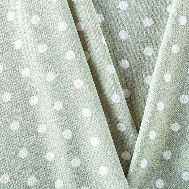 Плательный креп с принтом в горох. Ткань средней плотности, не толстая, пластичная, поверхность полотна матовая, с характерной мелкозернистой фактурой, прочная, хорошо драпирующаяся. Превосходно подойдет для пошива стильного костюма, юбки, платья, комбинезона, топа, брюк.
