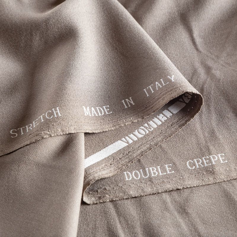 Итальянский вискозный двойной креп невероятно красивый, нежный и пластичный. Ткань отлично драпируется, хорошо тянется, практически не мнется, лицевая поверхность матовая и зернистая. Идеален для пошива комбинезона, платьев, костюмов, свободных брюк, юбки.