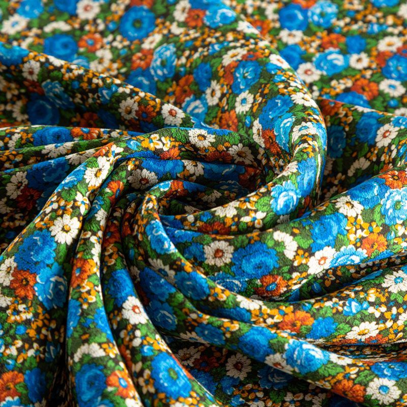 Итальянский креп плательной плотности с мелкоцветным ярким принтом. Поверхность матовая и фактурная, ткань малосминаемая, тянется за счет эластана в составе, красиво драпируется, струится и дает объемную складку, не просвечивает.Идеально подойдет для шикарного платья, блузы, юбки, комбинезона, брюк свободного кроя.