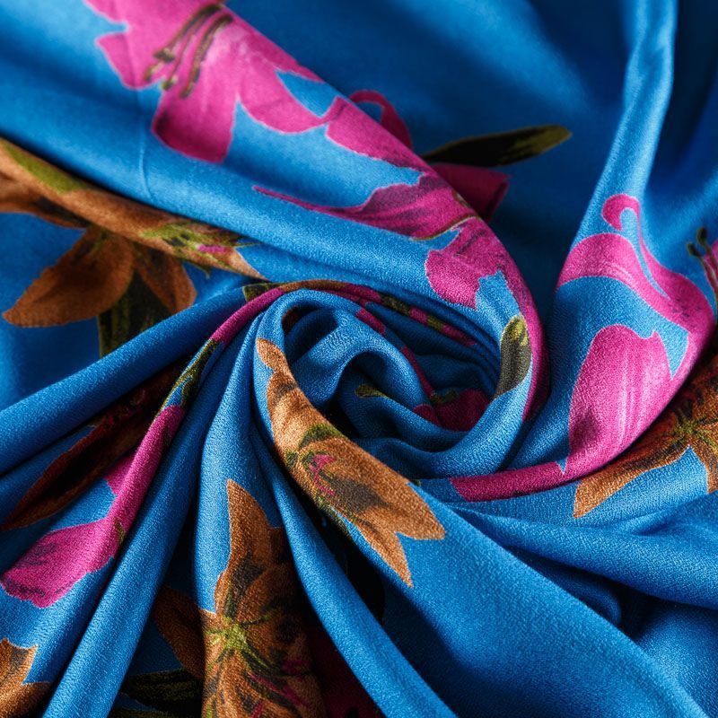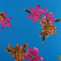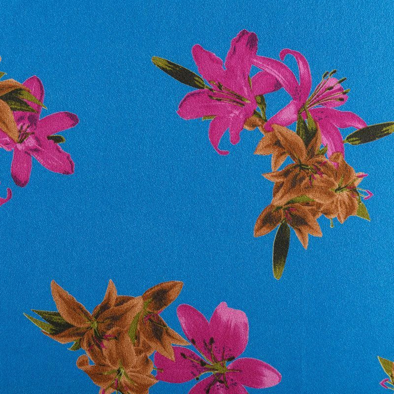 Плательно-блузочный вискозный креп синего оттенка с крупным цветочным принтом. Ткань средней плотности, имеет зернистую фактуру и матовую поверхность, не просвечивает, пластичная, хорошо драпируется мягкими складками, струится. Подходит для пошива платья и сарафана, юбки, блузки, туники, топа, комбинезона.