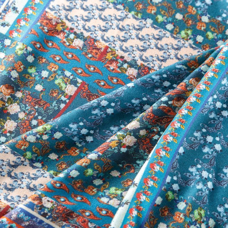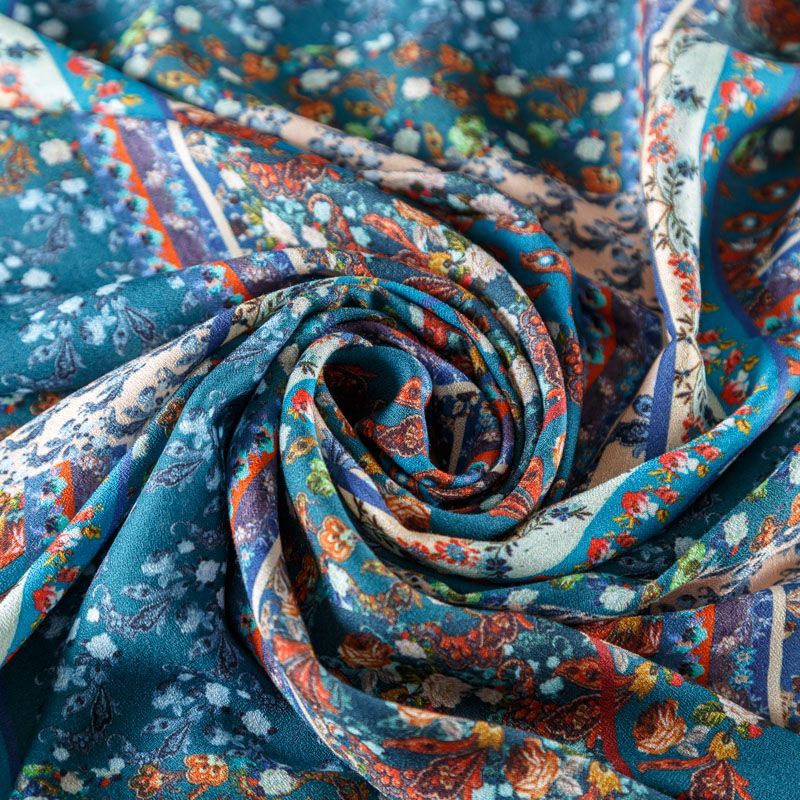 Креп 026-06199 бирюзовый принтованный в Санкт-Петербурге