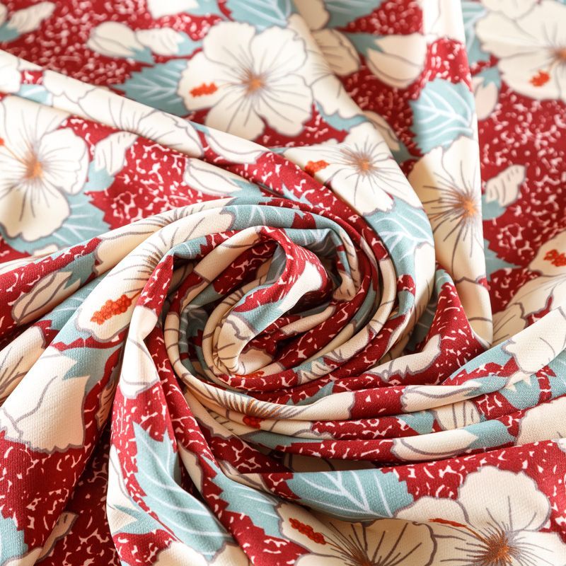 Креп 026-08407 вишневый принтованный в Санкт-Петербурге