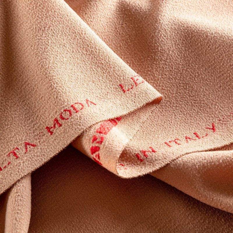 Итальянский шерстяной креп в сложном крамельно-персиковом оттенке. Ткань мягкая, пластичная, образует мягкие фалды, слегка просвечивает, тянется за счет эластана в составе. Подойдет для пошива весенне-осеннего костюма, платья, комбинезона, юбки, брюк.