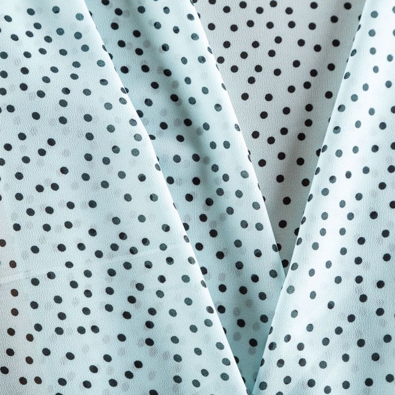 Легкий, воздушный, мягкий и нежный креп-шифон, прекрасно драпируется, приятен к телу, полупрозрачный, может потребоваться подклад. Поверхность матовая, без блеска, фактурная. Идеален для нежных платьев летящих силуэтов, топов, туник, блузок, юбок с роскошными драпировками и воланами.