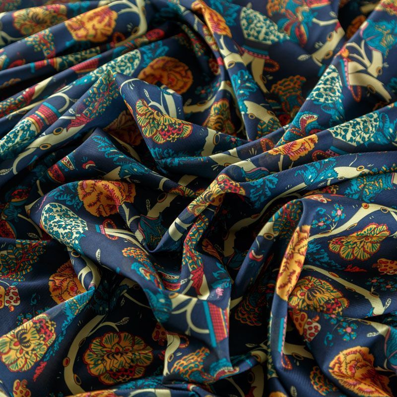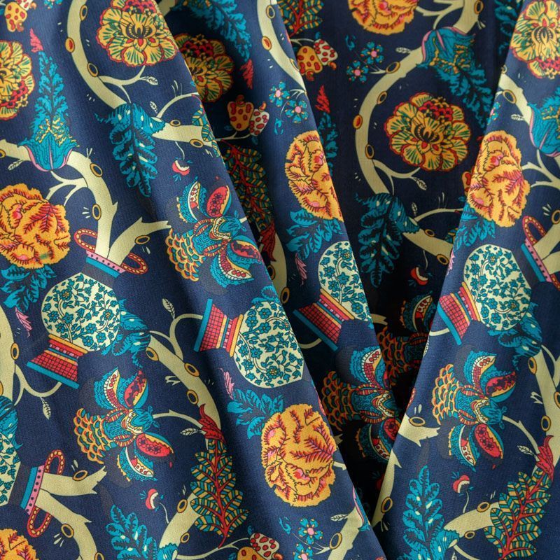 Креп-шифон 027-08366 темно-синий принтованный в Санкт-Петербурге