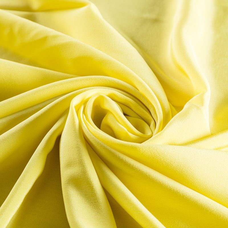 Натуральный шелковый крепдешин с эластаном желтого цвета с зеленым оттенком. Ткань имеет матовую поверхность, легкая, тонкая, струящаяся, хорошо драпируется. Будет идеальна для пошива летнего сарафана, платья, блузки, костюма в пижамном стиле, широких брюк или юбки.