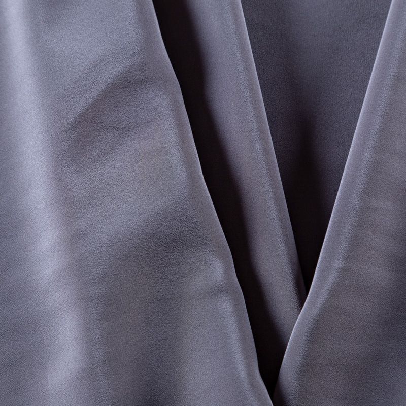 Итальянский натуральный шелковый крепдешин в сером оттенке, фактурный, легкий и струящийся, слегка просвечивает, отлично драпируется. Идеально подойдет для пошива платьев и сарафанов расклешенных моделей, с воланами, летящих юбок, топов, блузки, юбки, широких брюк, костюма в пижамном стиле.