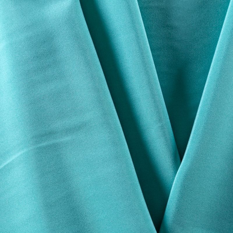 Итальянский натуральный шелковый крепдешин в бирюзовом оттенке, фактурный, легкий и струящийся, слегка просвечивает, отлично драпируется, тянется за счет эластана в составе. Идеально подойдет для пошива платьев и сарафанов расклешенных моделей, с воланами, летящих юбок, топов, блузки, юбки, широких брюк, костюма в пижамном стиле.
