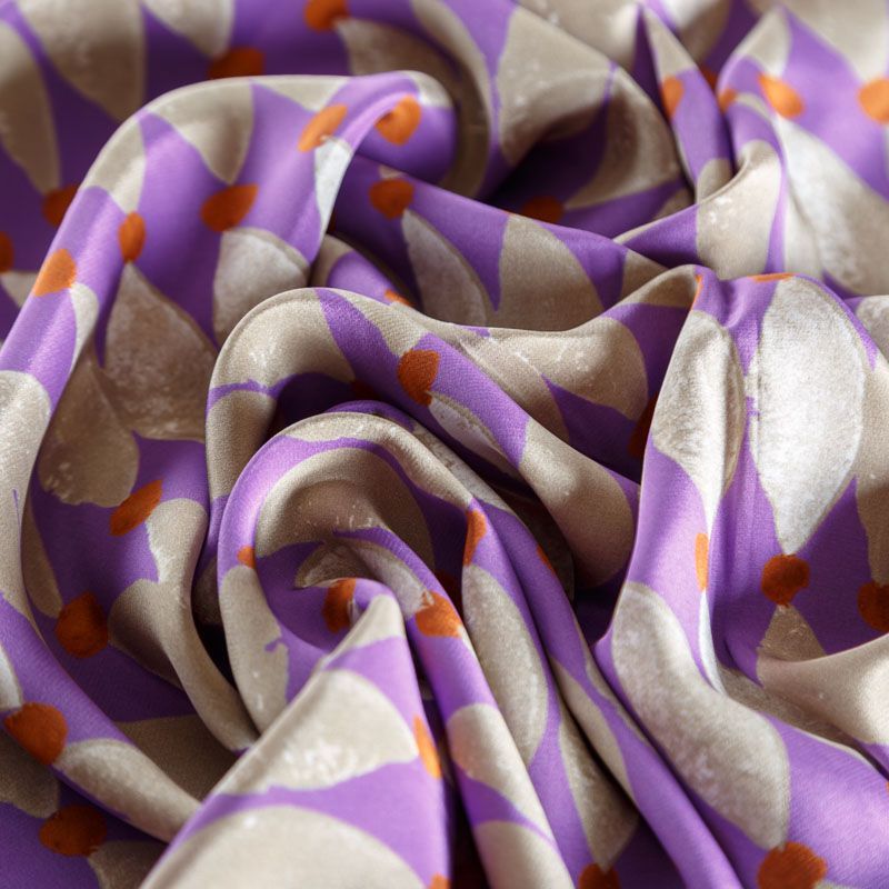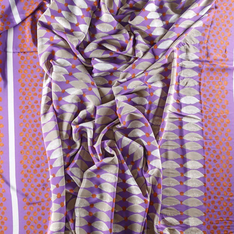 Крепдешин натуральный К01-377 лавандовый принтованный в Санкт-Петербурге