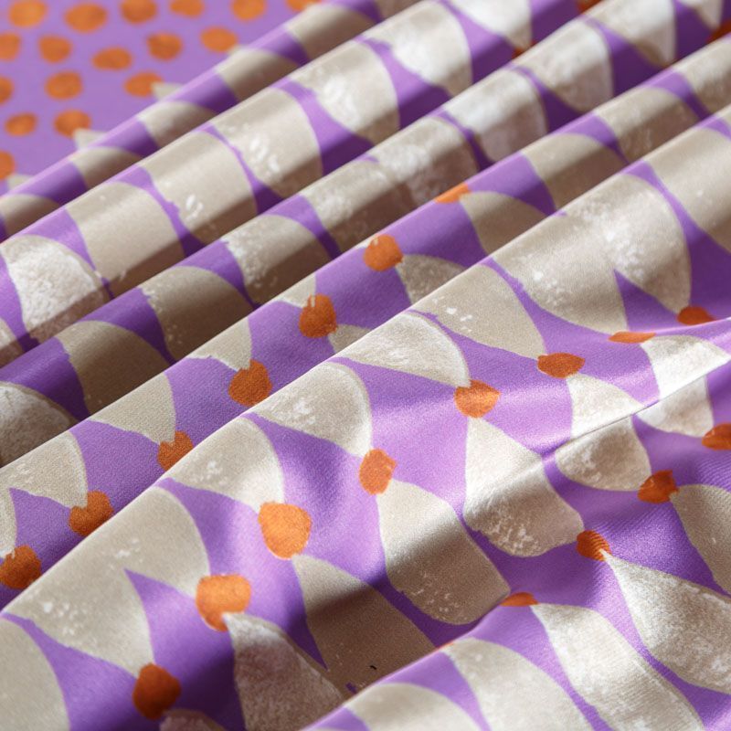 Итальянский натуральный купонный крепдешин с абстрактным принтом на фоне лавандового оттенка, тонкий, слегка прозрачный, отлично драпируется, легкий и струящийся с креповой поверхностью. Идеально подойдет для пошива платьев и сарафанов расклешенных моделей, с воланами, летящих юбок, топов, блузки, костюма в пижамном стиле.