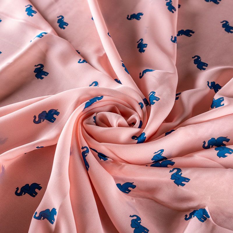 Итальянский крепдешин с матовой лицевой поверхностью с игривым ярким принтом на нежном персиково-розовом фоне, тонкий, слегка прозрачный, отлично драпируется, легкий и струящийся. Идеально подойдет для пошива платьев и сарафанов расклешенных моделей, с воланами, летящих юбок, топов, блузки, костюма в пижамном стиле.