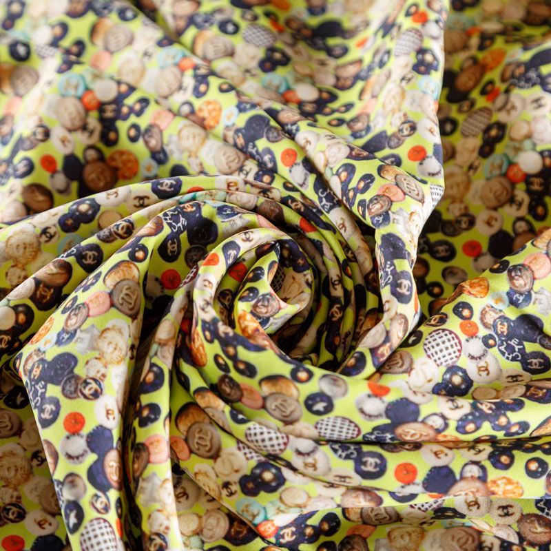Крепдешин натуральный К18-074 желтый принтованный в Санкт-Петербурге