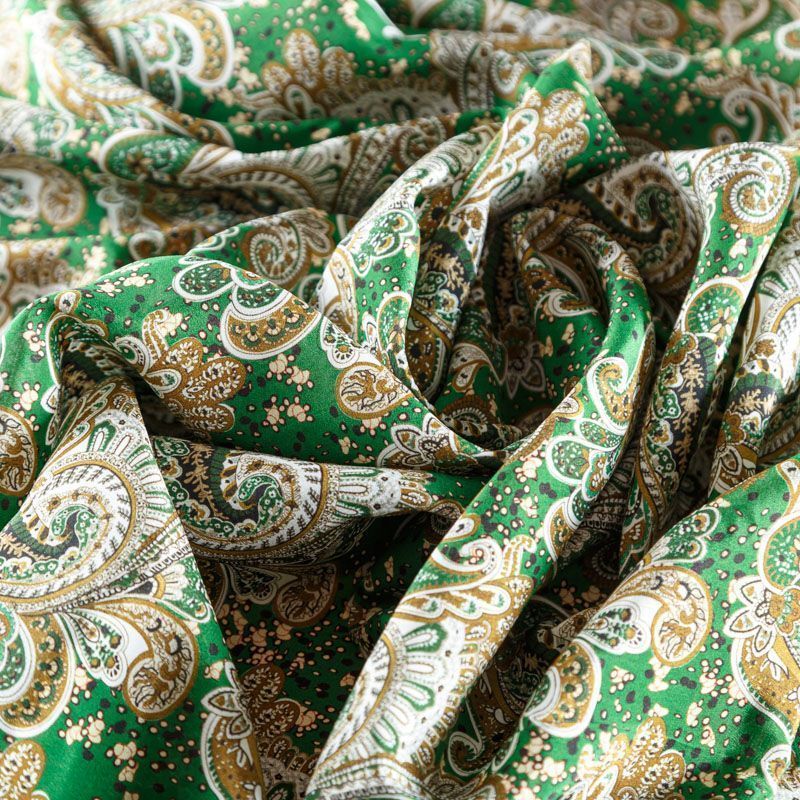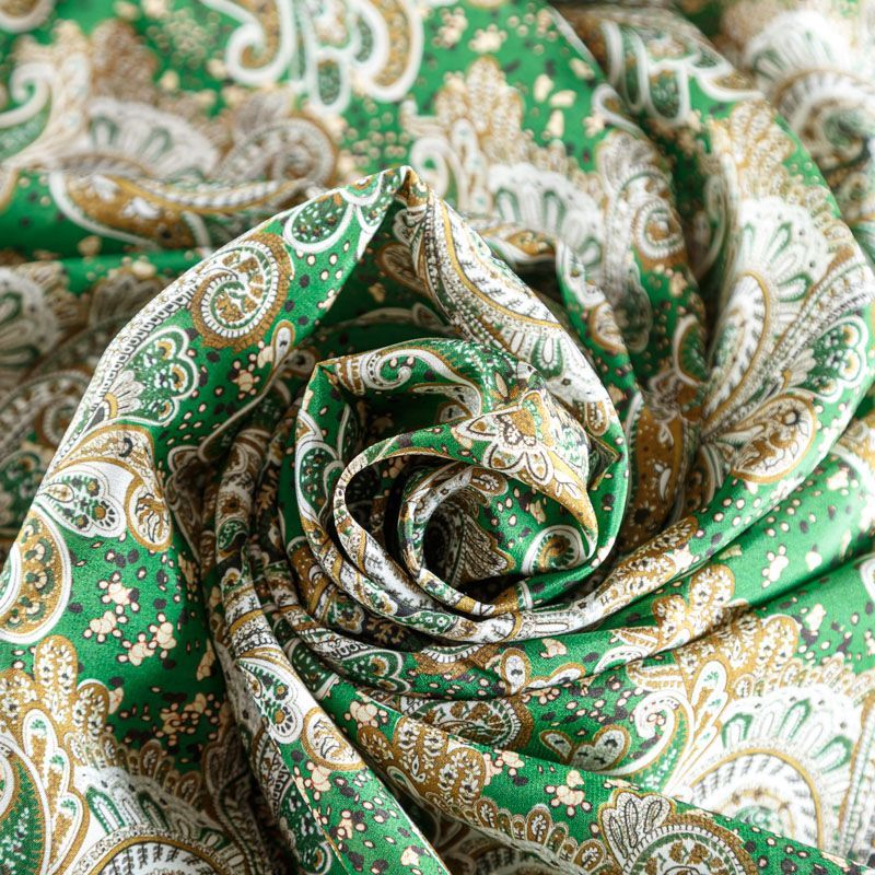 Крепдешин натуральный К24-023 зеленый принтованный в Санкт-Петербурге