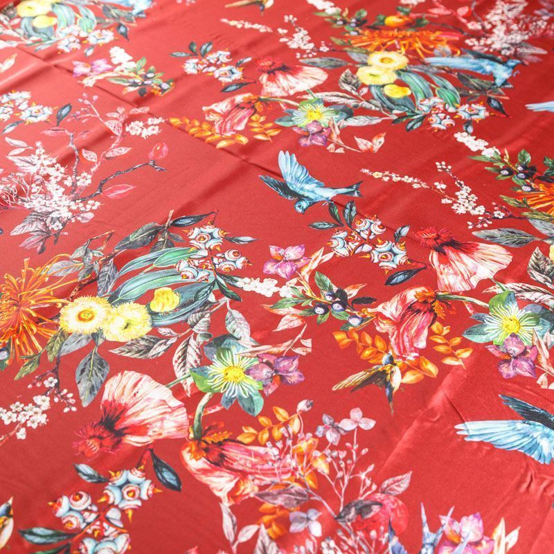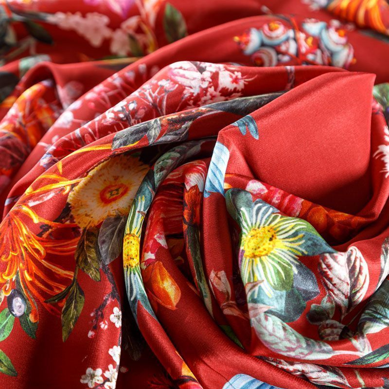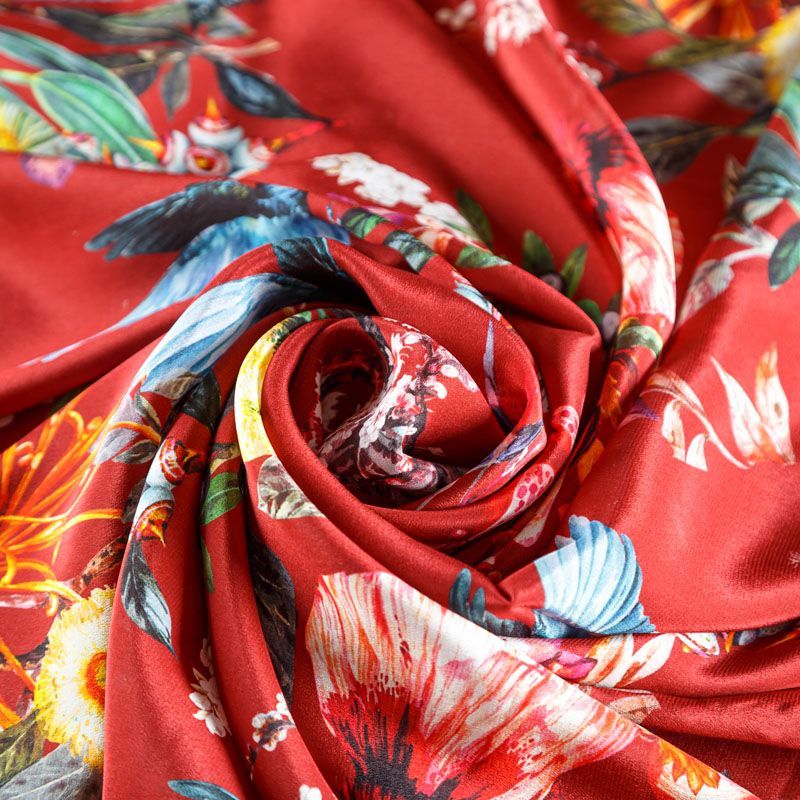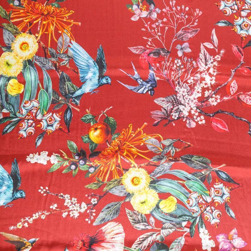 Крепдешин натуральный К24-040 красный принтованный в Санкт-Петербурге