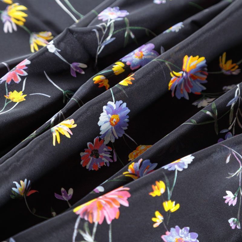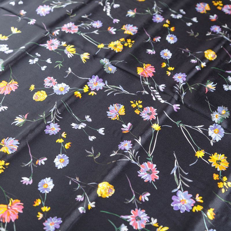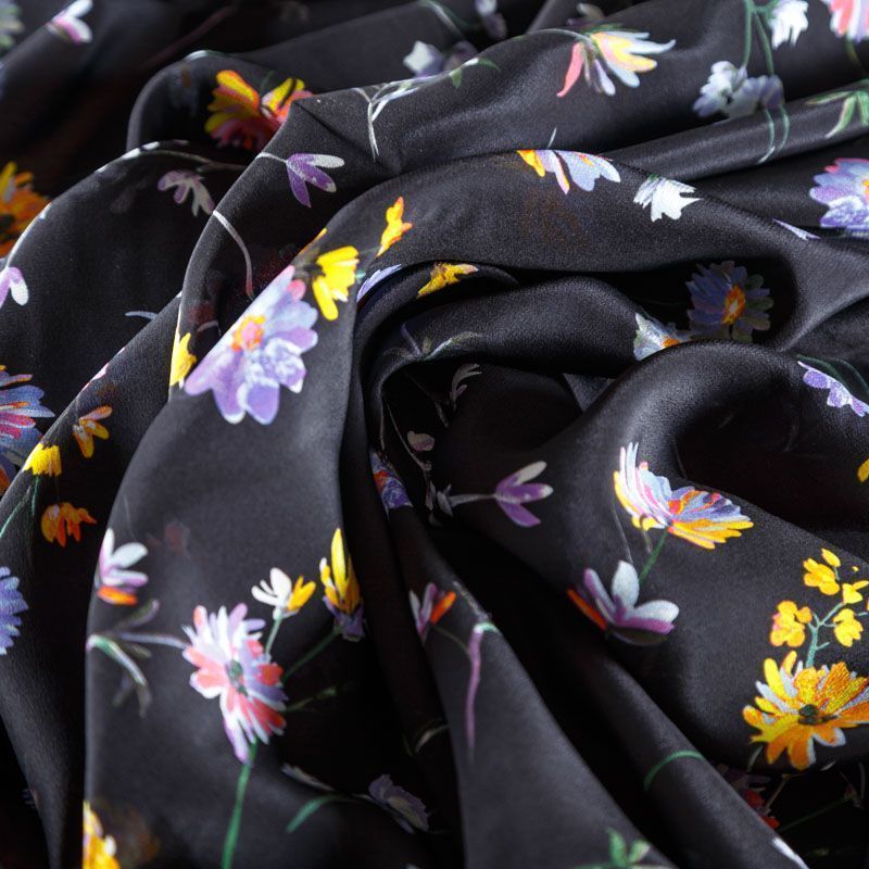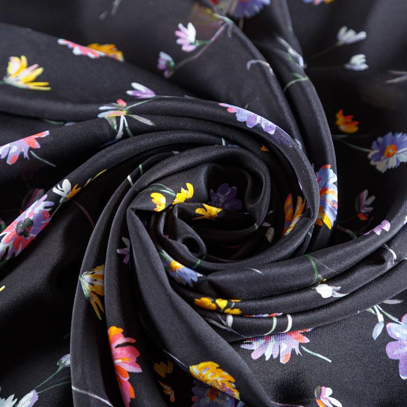Крепдешин натуральный К24-042 черный принтованный в Санкт-Петербурге