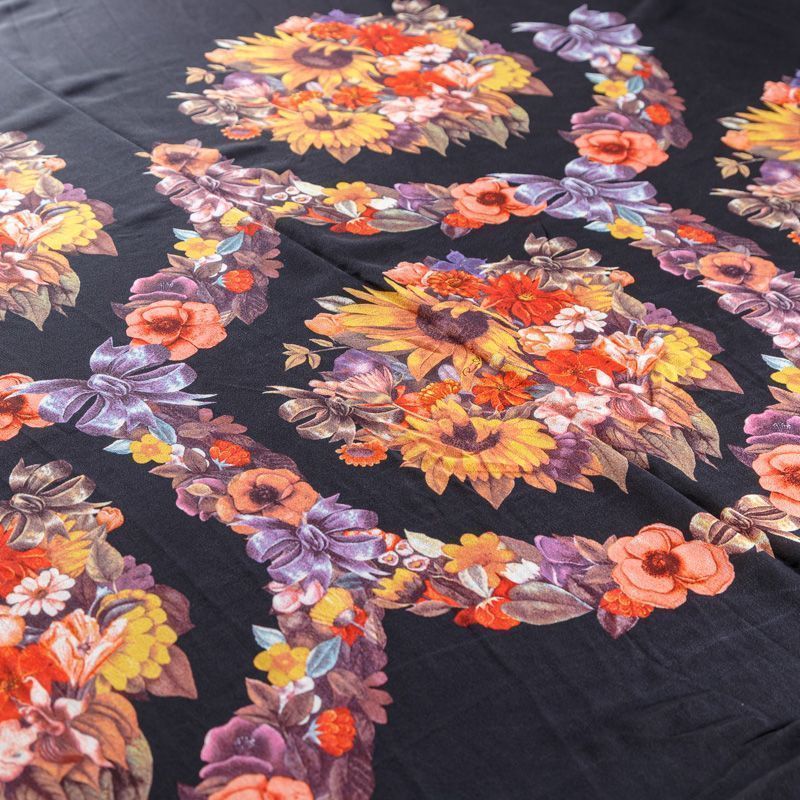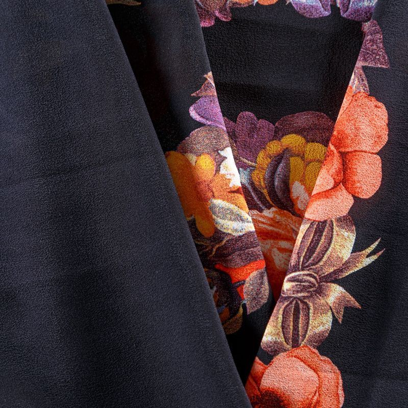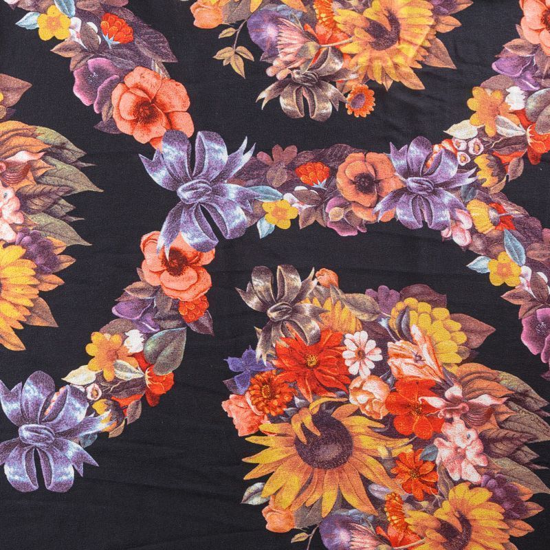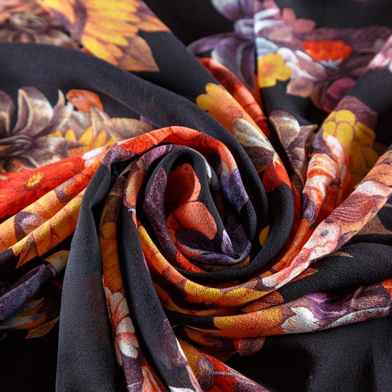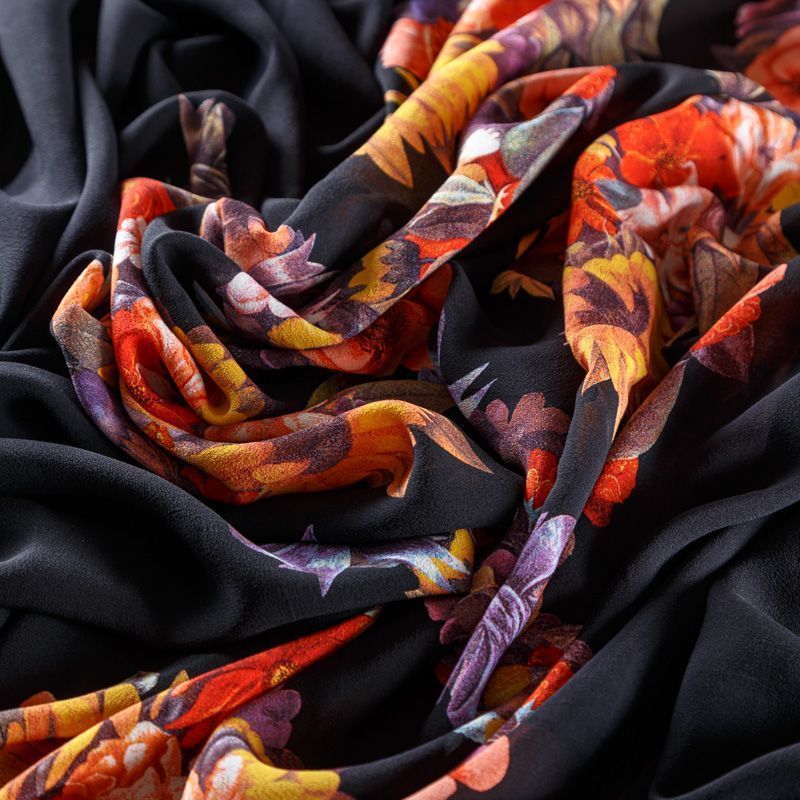 Крепдешин натуральный К29-785 черный принтованный в Санкт-Петербурге