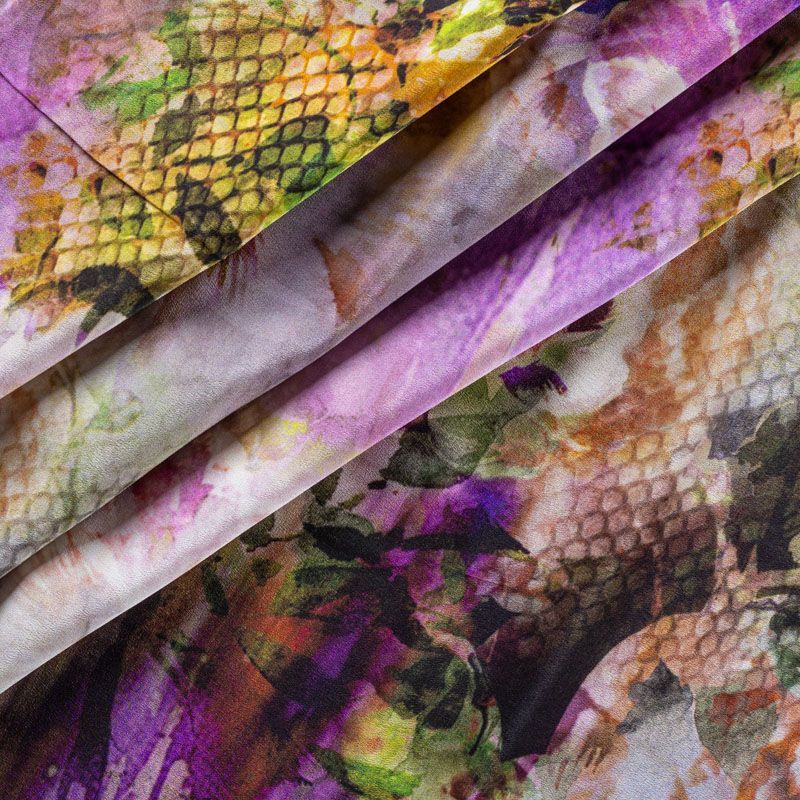 Крепдешин натуральный К2-0030 фиолетовый принтованный в Санкт-Петербурге